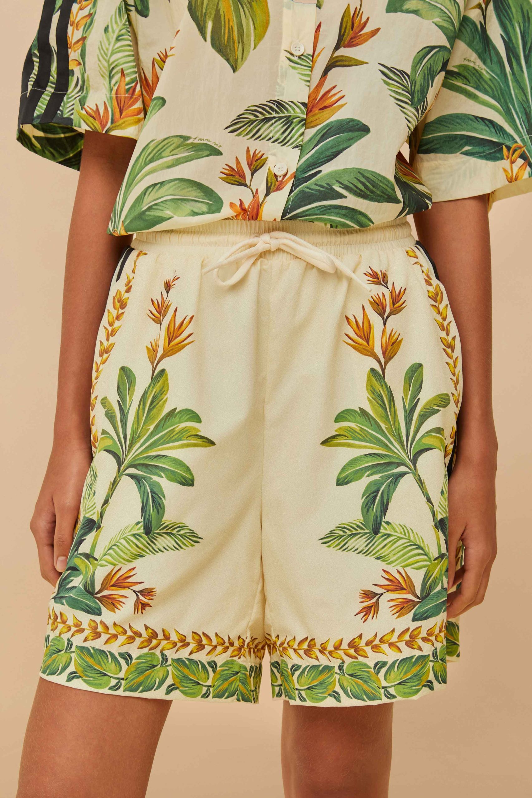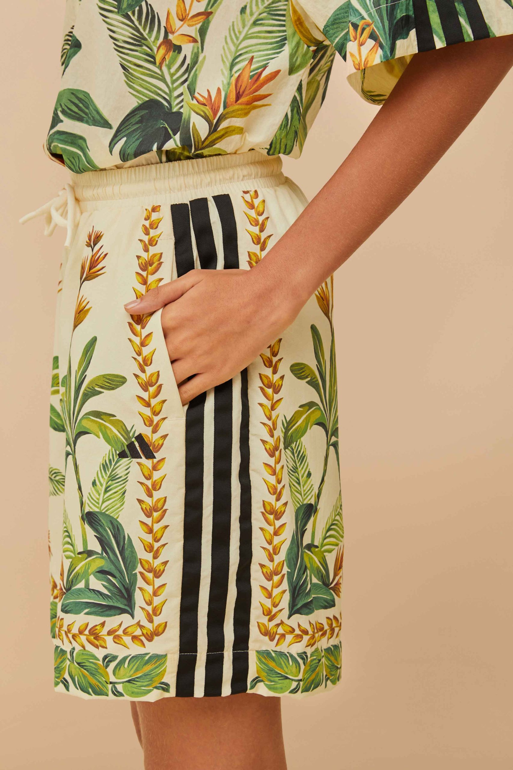 Step into tropical charm with the adidas tropical breeze cream white short. Featuring lush botanical patterns and exquisite embroidery, these shorts capture the essence of a vibrant paradise. Crafted from responsible materials, their relaxed cut offers ultimate comfort, while side stripes add a playful touch. Elevate your wardrobe with this stylish blend of nature and design, perfect for days when you want to stand out effortlessly.Since 2014, we have been blending our unique prints with the three most famous stripes in the world, connecting Adidas’ urban energy with the essence of Brasil. Discover our new Adidas <3 FARM Rio collection, where modern streetwear meets a print lover's paradise, to stand in the sunshine while connecting with your own light.
