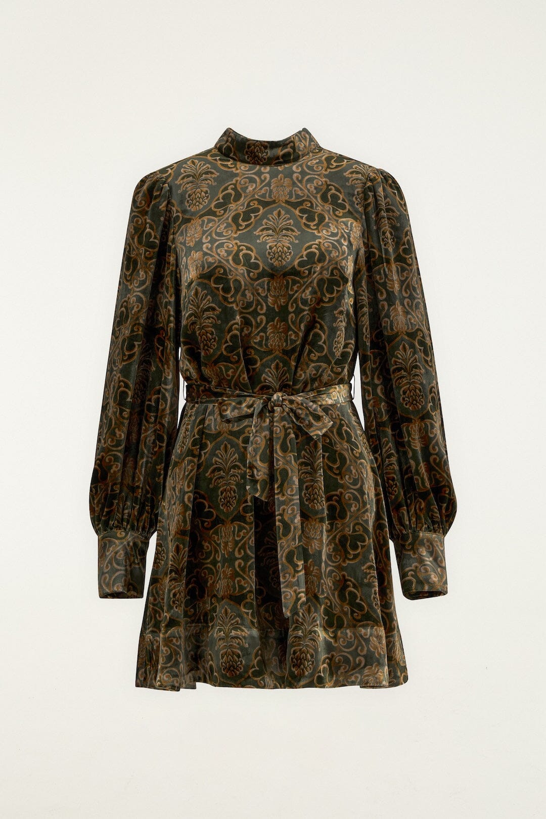 Sand Delicate Ainika Long Sleeve Belted Mini Dress