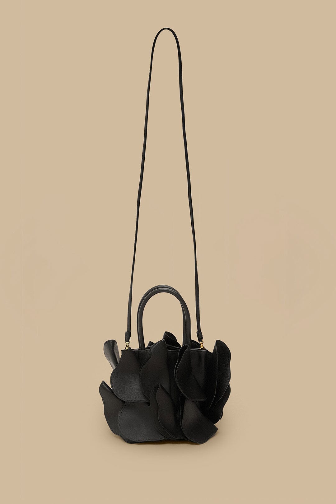 - Small handle + crossbody strap