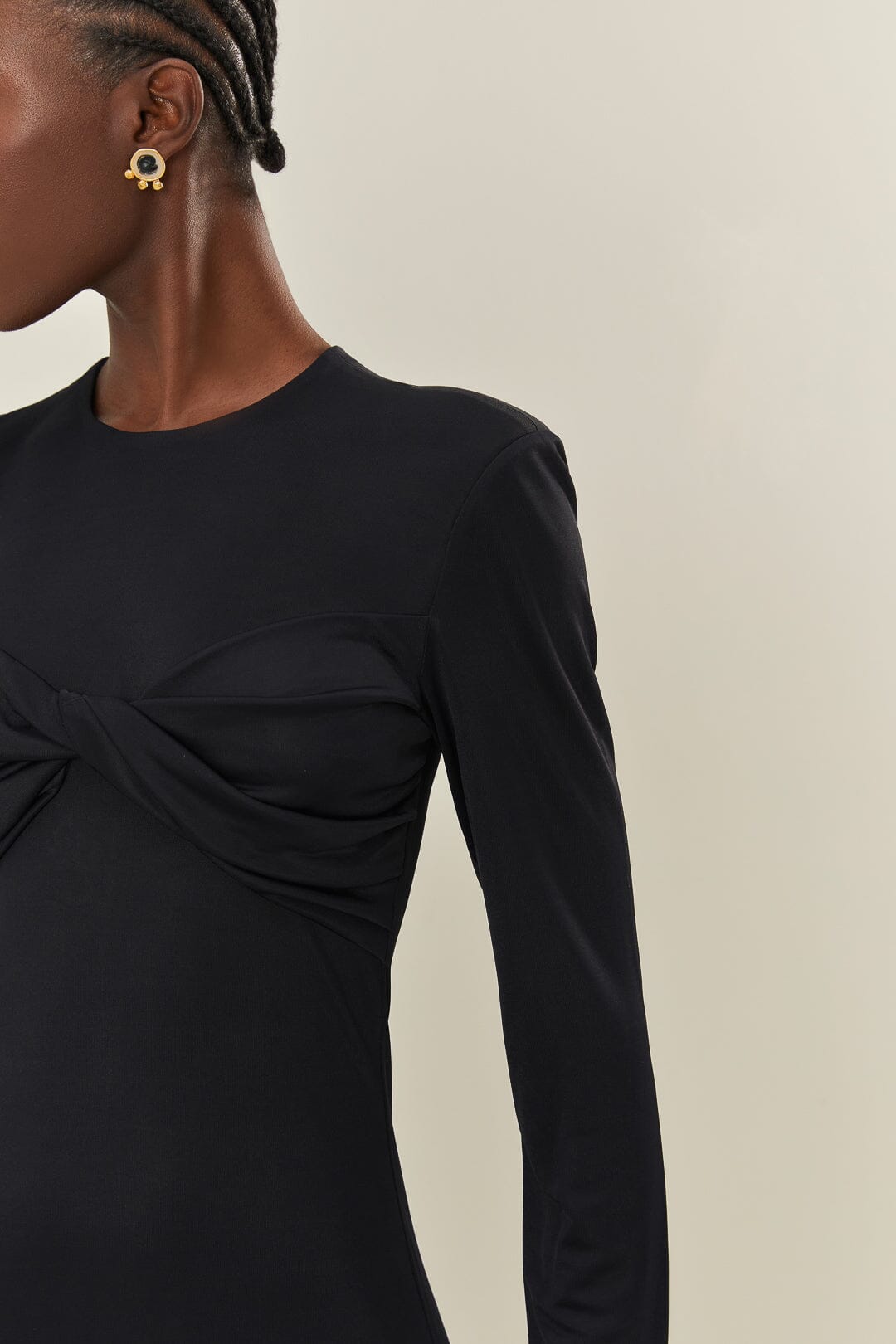 Embrace elegance with the Black Twisted Cup Midi Dress from FARM Rio. This chic dress features a flattering round neckline and an artful twisted detail on the bust, creating a subtle yet enchanting focal point. Crafted in a timeless black hue, it’s designed with a gently flared midi-length skirt that sways with your every move. Long sleeves add a touch of sophistication, making it perfect for transitioning from day to night with effortless grace.