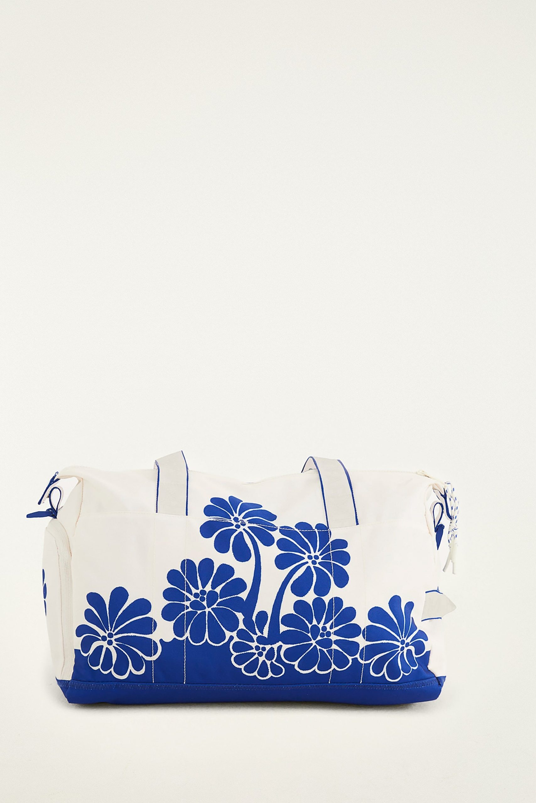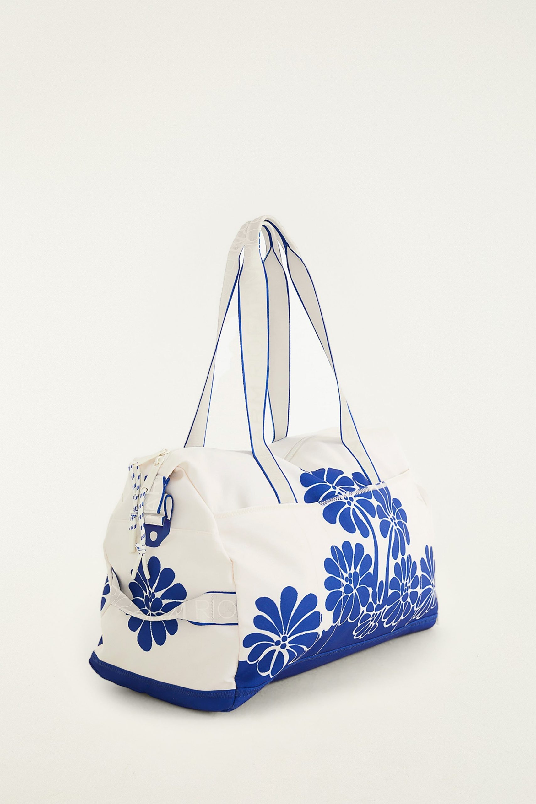 Embrace vibrant charm with the Blue Palermo Duffel Bag from FARM Rio. Its rich cobalt hue is beautifully contrasted by playful tropical prints, creating a joyful yet sophisticated statement. The bag’s rounded silhouette offers spacious ease, while subtle, hand-painted details evoke the warmth of Brazilian artistry. Lightweight and soft to the touch, it’s a perfect companion for everyday adventures infused with color and soul.