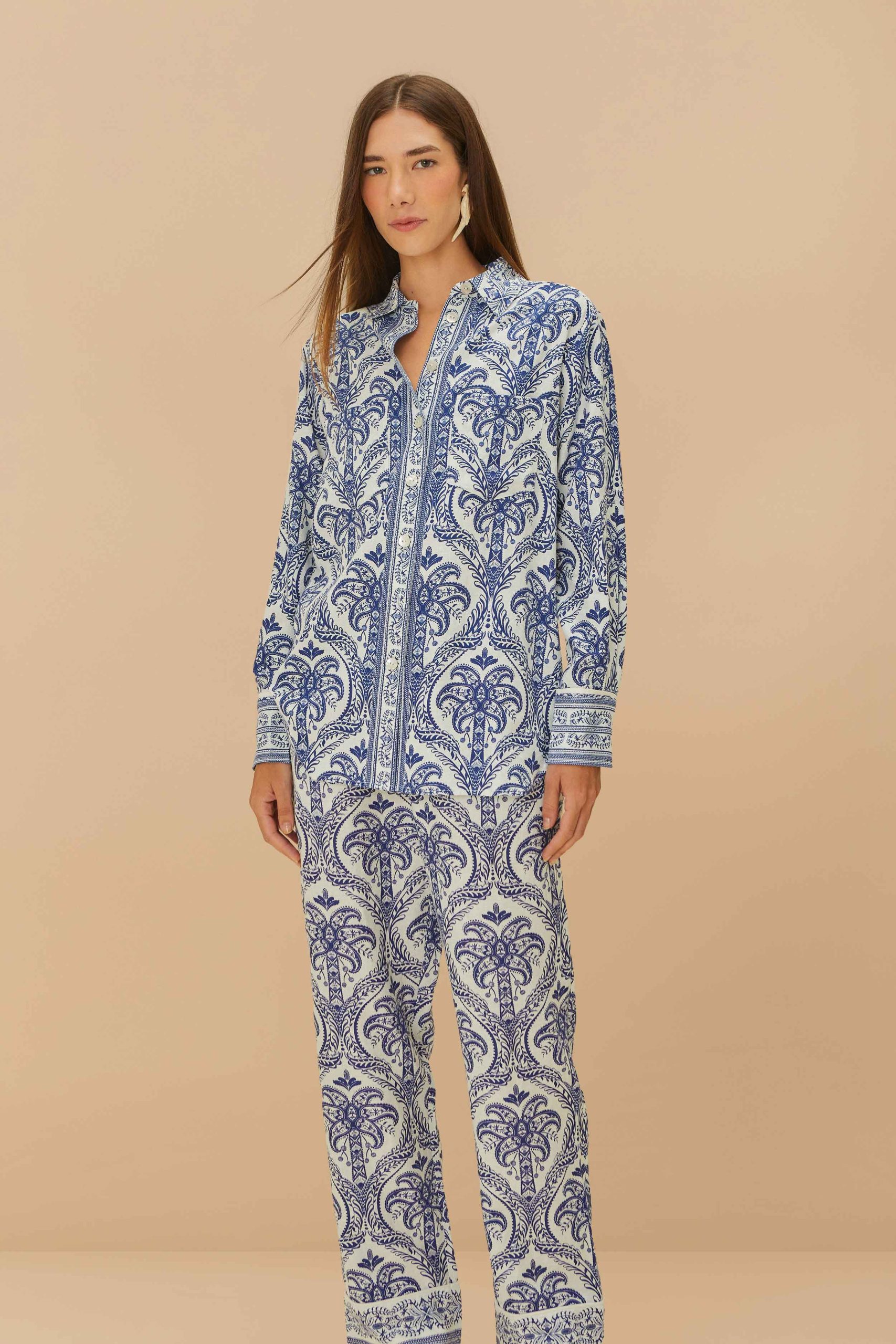 Embrace effortless elegance with our Off-White Tropical Cameo LENZING™ ECOVERO™ Euroflax™ Pajama Pants. Featuring a relaxed fit adorned with an intricate tropical pattern in calming shades of blue and off-white, these pants evoke a sense of playful tranquility. The soft, flowing fabric and tailored waistband merge comfort with style, making them a delightful addition to your wardrobe, crafted from responsible materials for a thoughtful touch.LENZING™ ECOVERO™: the eco-responsible fibers generate up to 50% lower emissions and water impact compared to generic viscose.