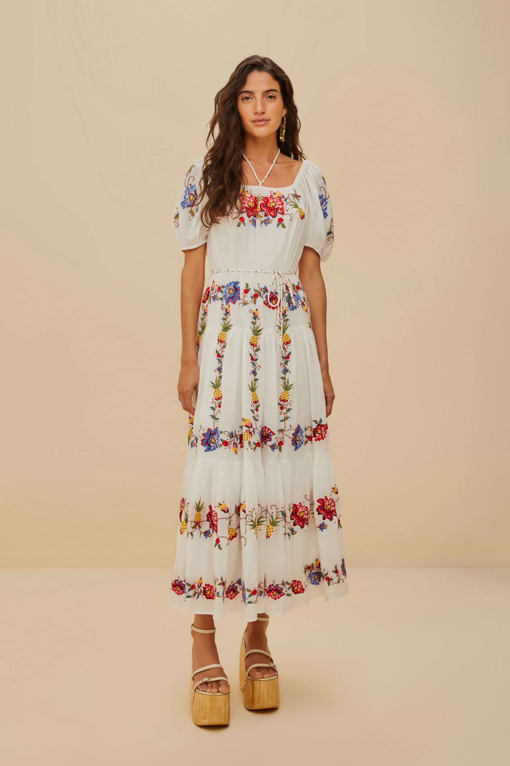 Off-White Tropical Porcelain Embroidered Maxi Dress – FARM Rio