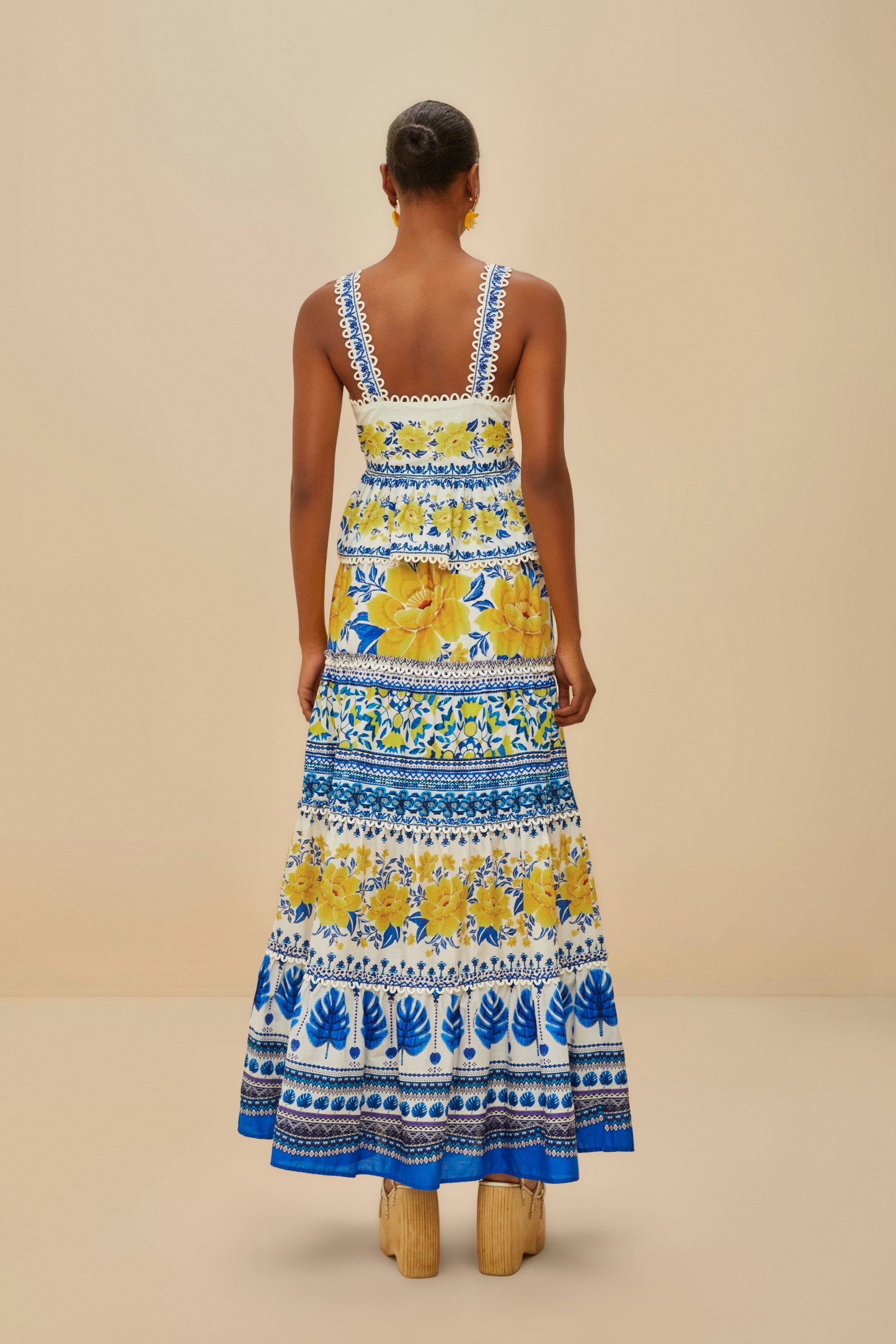 Step into a world of effortless elegance with the off-white zuli low rise maxi skirt from FARM Rio. This enchanting piece features a flowing silhouette that gracefully dances with every step, capturing the spirit of carefree days. Delicate floral patterns unfurl across the soft fabric, radiating warmth and charm. Embrace its exquisite drape and transform your look into a masterpiece of bohemian allure and radiant playfulness.