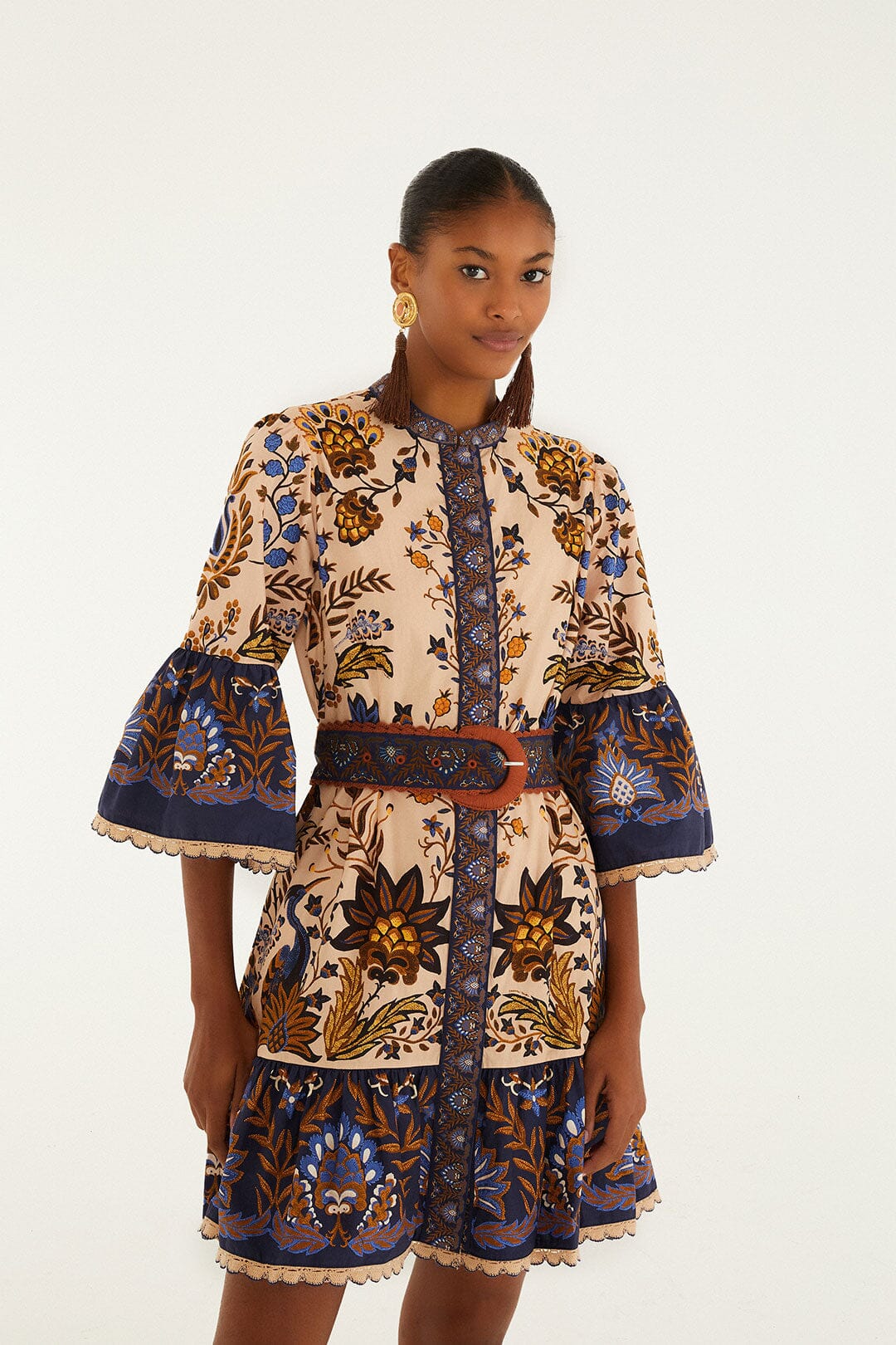 Step into sunshine with the Pink Marvelous Garden Organic Cotton Mini Dress by FARM Rio. Crafted from 100% GOTS-certified organic cotton, this playful mini dress features a high neckline and a vibrant garden-inspired pattern that bursts with pinks and lush greens. Its relaxed silhouette gently skims the body, bringing effortless comfort and a touch of tropical whimsy—perfect for embracing joyful moments in sustainable style.