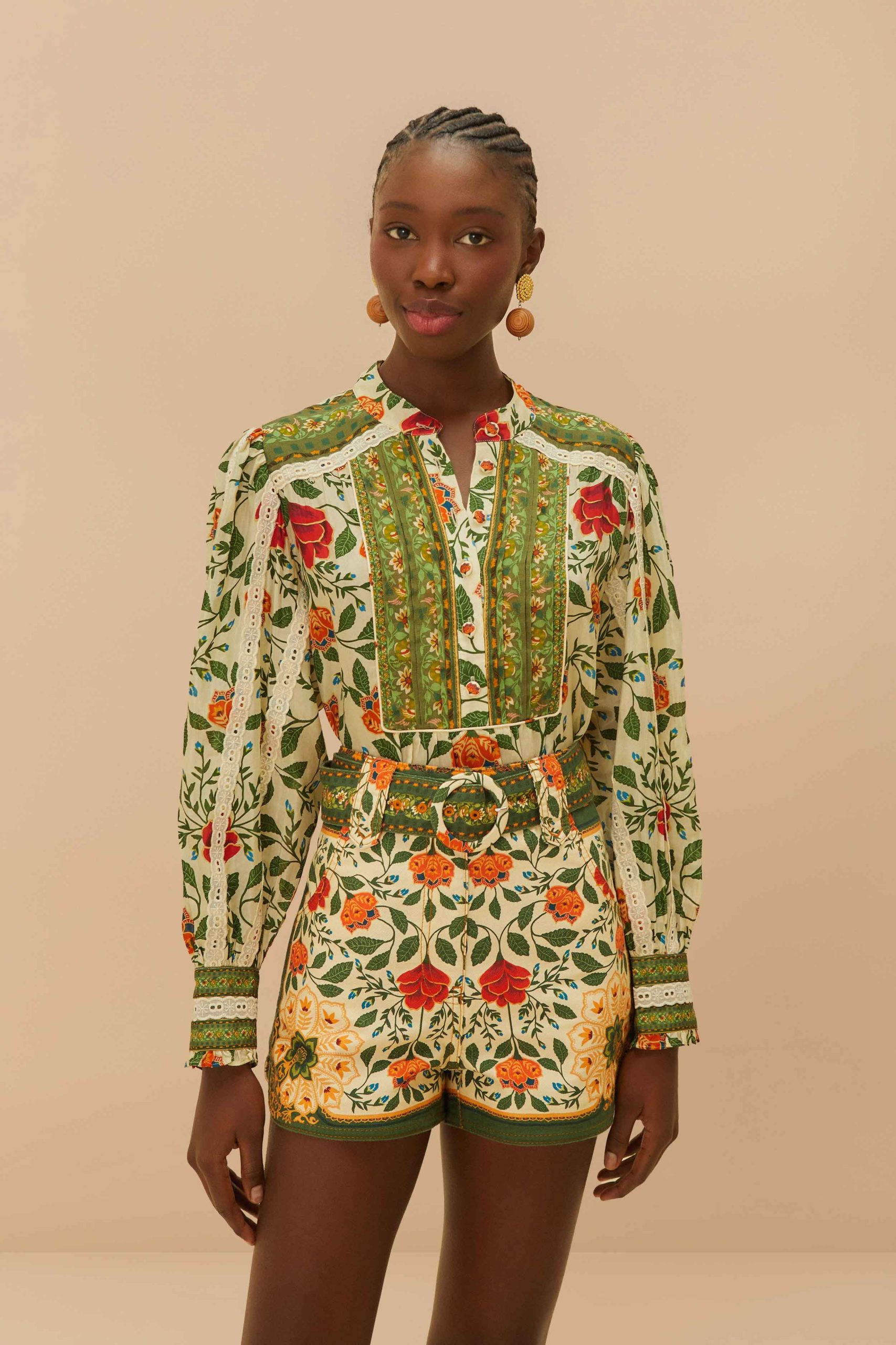 Embrace the vibrant charm of FARM Rio with our Sand Garden Tapestry Shorts. Crafted from responsible materials, these shorts boast intricate embroidery and a lush floral tapestry in rich greens and warm oranges. The high-waisted cut enhances the silhouette, while the playful patterns evoke the beauty of a flourishing garden. Perfect for adding a touch of tropical elegance to your wardrobe, these shorts celebrate craftsmanship and creativity.