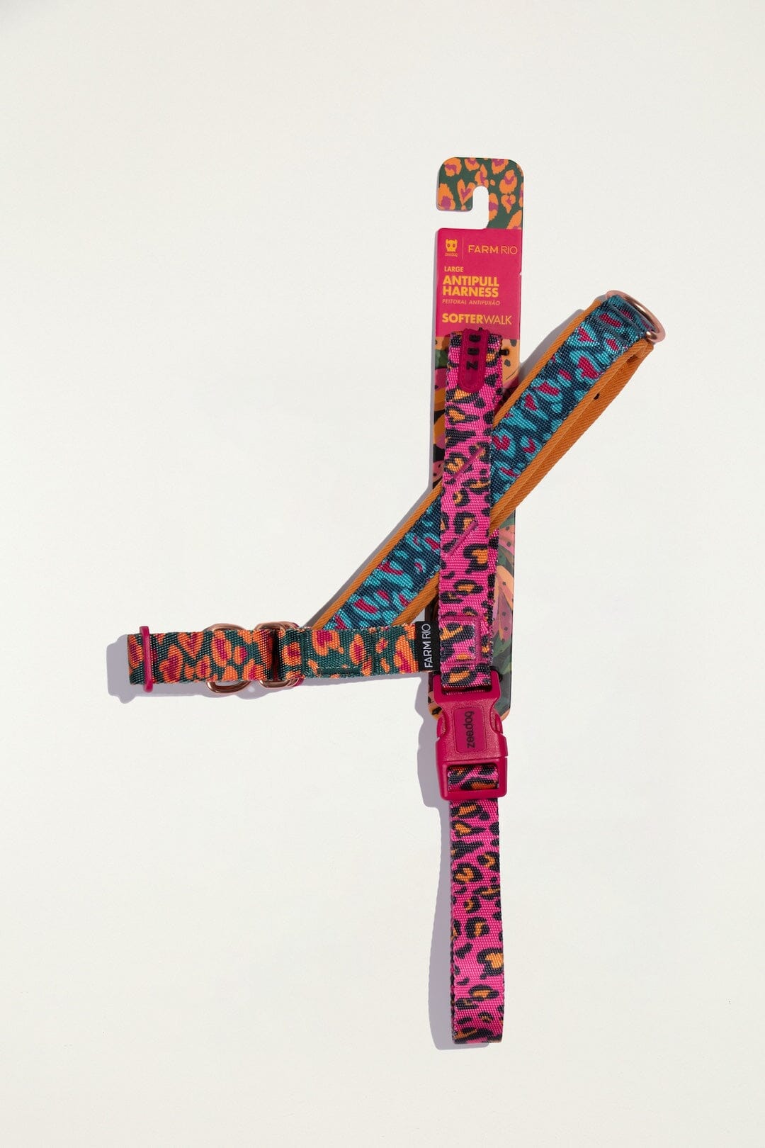 For pets who walk gently, the FARM Rio x Zee.Dog SofterWalk Harness offers comfort, safety, and a touch of tropical fun. Its anti-pull engineering teaches balance with kindness, while FARM’s radiant prints turn every outing into a statement of joy.